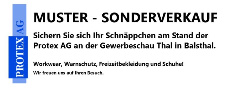 Die Protex AG begrüsst Sie gerne am Messestand der Gewerbeschau Thal in Balsthal vom 03.05.2019-05.05.2019.